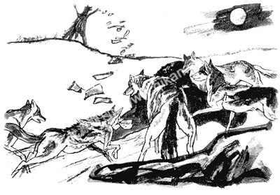 三个猎人开始感到有获救的希望,但狼群吃饱了却没有像他们希望的那样撤走,仍然死死地守着他们,这下三个猎人的心又沉了下来,难道狼群真的是听命于“狼神”、有意识地来围困他们?