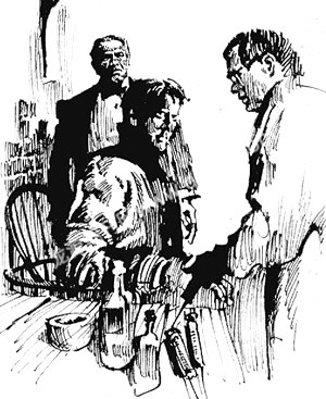 弗朗西斯得意地讲完这一切,命令医生动手。医生拿起匕首,走到乔治的面前,正要挥刀刺下去。突然一声枪响,医生手里的匕首“当”地掉在地上,手腕上出现了一个血窟窿。