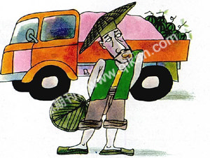 这天,胡老汉和老伴贩了一大卡车西瓜,到农贸市场去卖。可没想到,大半天了没一个人来买他的瓜。