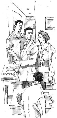 到了下一站,车门刚打开,小铜匠就快步站到了投票箱前,用身子挡住了开车的小浦东,扯开嗓子喊了起来:“上车的乘客请自觉买票了,票价一元钱!”第一个上来的是个小伙子,他疑惑地愣了几秒钟,小铜匠忙解释,说是投票箱坏了,所以暂时改为人工售票。小伙子看小浦东没有搭话,以为是默认了,就把手中的一元钱递给了小铜匠,然后就进去了,后面的人也纷纷把钱递了过来,小铜匠收完最后一个乘客的钱后,回头故意大声冲小浦东喊道:“上来的十一位乘客都已经买过票了,关门,开车!”这样子就像是售票员一样,小浦东气得脸色铁青,小铜匠则一脸得意,他以为自己做得合情合理:我要乘车,可我没零钱,小浦东非要我掏钱,我只得把一百块钱扔进了票箱,小浦东不让我收乘客的钱作为找零,我只能用这个方法收回我的九十九块钱!我所做的没有错,小浦东总不能打110,说是两个情敌在公交车上斗法吧?哈哈……