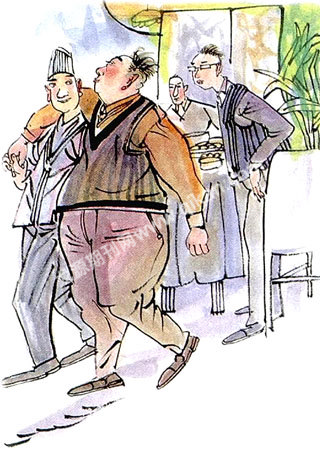 等了好一会儿,张三还没有进来,倒是有一个肥头大耳、白白胖胖的中年人推门进来了,这人看样子也在喝酒,而且喝高了,他一边打着酒嗝,一边摇摇晃晃地坐到了张三的位子上。众人见他这个派头,猜想他或许就是张三去请的那个姓赵的局长了,于是便小心地试探道:“请问您是不是赵局?”胖子杯子一放,两眼一瞪,有些不高兴了:“你们居然连我都不认识?我不是赵局谁是赵局?”