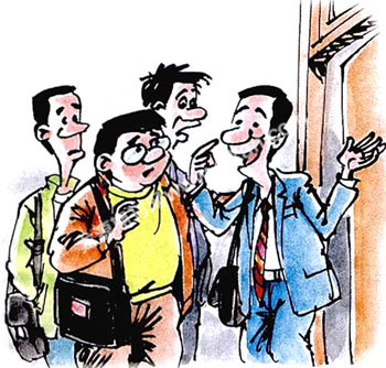 现在工作不好找,路明本想毕业后先工作再结婚,可父母执意要他先结婚,路明只好答应,结了婚。婚后第二天,路明就急着去找工作,他听说商贸城招聘文秘人员,就一早赶到商贸城的招聘处,可招聘处的办公室里空无一人,一个扫地的大妈告诉路明:有人结婚,在饭店摆喜酒,招聘处的人都去上礼了,下午2点上班。
