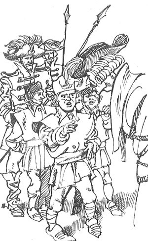 兰比指着被五花大绑的赫鲁,对卫兵们说:“这个家伙已经被我制服了,我知道你们都是受他的威胁才这样做的,现在,你们再也不用怕他了!”卫兵们都纷纷举起手来,表示要拥护王子。