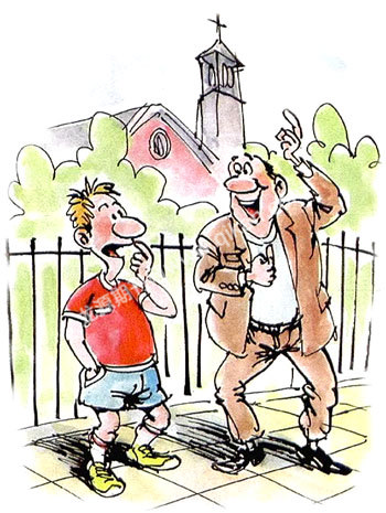 过了一会儿,忏悔室里又出来一个彪形大汉,满脸的欢喜表情。罗比好奇地问:“你一定也得到了上帝的原谅吧?”