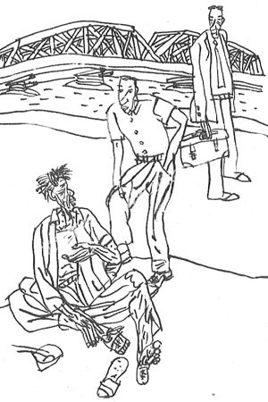 两人一前一后在街上走着,阿力突然看见前面有个乞丐,一下子站住了:天啊,那不是三狗叔吗?