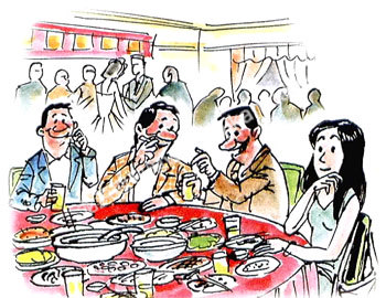 阿强松了口气,让对方叫老婆听电话。还没等他开口,老婆就像打枪一样说道:“老公,我知道你肚子很饿,请再坚持半个小时。那边一桌还有几个酒鬼没有走,桌上的菜有七成没有动过呢,等我打包完马上赶回去……”