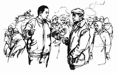 这时,人群中突然冒出一个小胖子,此人身高1米7,腰围3尺7,体重107——那是公斤!他往老胡身前一站,就像竖起一块排门板,把路给堵死了,说:“201室的老头老太都被炸死了,谁给你算账?”