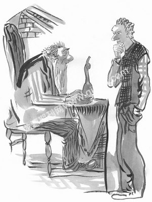 朋友照纪威说的去做了。不久以后,他就回来了,那个魔瓶就扣在他的外套上,他晃晃悠悠地走到纪威身边,说:“这是个挺好的瓶子,既然我花2个生丁买到了它,我就不会只要1个生丁就卖掉它。”