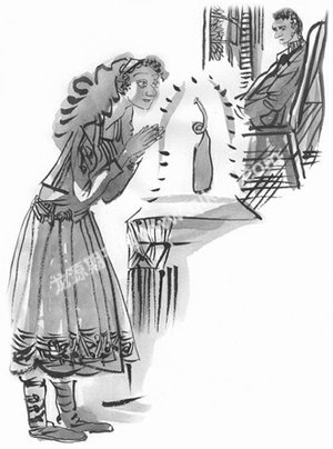 那一夜,纪威一刻也没有合眼。他想得很多,他不愿意伤害柯库娅,不愿意给她带来危险。第二天,他给柯库娅写了一封信,说要推迟婚礼,然后登上了航船,去寻找罗帕卡,希望能再一次得到那瓶子,治好自己的病。