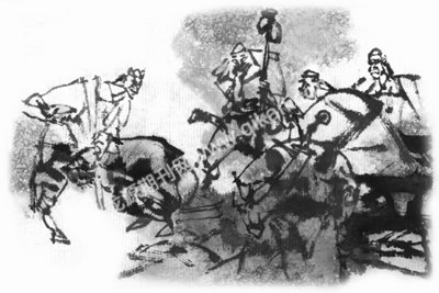 柳自在的嚎叫引来了家丁,他赶忙吩咐家丁,说符豫子和“独龙”是强盗,只管出手,打死一个,赏银百两。听了柳自在的话,家丁个个奋勇当先,饶是“独龙”武艺高强,也架不住对方人多,渐渐落了下风。