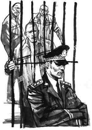 常四只得回到监室,跟陆五、曹建同处一室。他根本不敢躺下睡觉,只好蹲在床角,紧张地盯着陆五和曹建的动静。陆、曹两人却像没事一样,蒙上被子呼呼大睡。可越是这样,常四越是紧张。十点一过,监室就熄灯了,只有走廊上的灯光隐隐照进来。又过了片刻,曹建停止了打呼,他从床上坐起来,轻咳了一声,紧接着,陆五也从床上坐了起来。