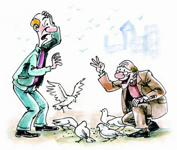 哈瑞很惊奇,他走过去问老者怎么回事,老者说:“先前掉到地上的鸽子翅膀折断了,而这只—”老者用手指着地上的鸽子,“这只鸽子已经很老了,活不了多久了,我就把那只鸽子身上的伤转到它身上来了。”