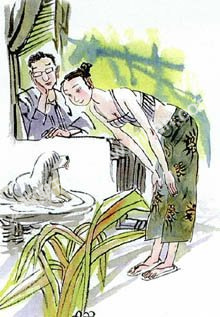 这天,老两口带着狗找上门来,老头一副可怜巴巴的样子,说:“这狗再养下去,非把俺折磨病不可,还是还给你吧,至于钱,随你的心意,反正俺是不能再把狗带回去了……”