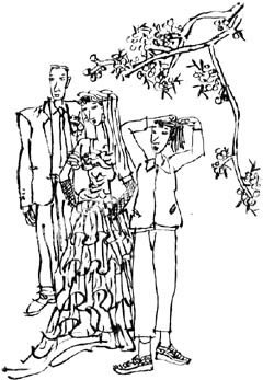 这两个动作虽然够文明,但新娘怎么能做得上来,她涨红了脸,连头都不敢抬。二柱子见了,便嬉皮笑脸地凑上前去,非要让新娘亲他一口不可。梁子怎么哀求也没有用,倒是一旁的伴娘小芳突然站起来,说:“你们这不是存心难为人嘛,新娘子穿着婚纱,怎么能做空翻呢?”