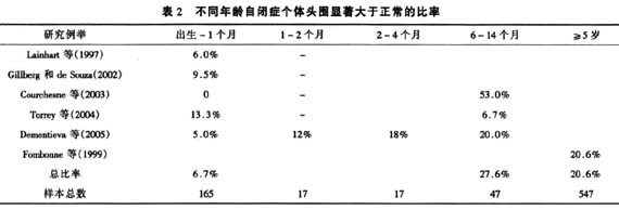 一段时间以来,头围测量研究、神经影像研究和解剖研究都一致地发现:虽然出生时自闭症婴儿的脑体积与普通儿童没有显著差异,但在随后的幼年阶段,大部分自闭症个体脑体积显著地大于普通儿童;随着他们逐渐长大,其脑体积又逐渐接近常人,最后达到“正常”[18]。这一发现无疑是近年来有关自闭症脑结构研究中最为惊人的成果之一[19]。
