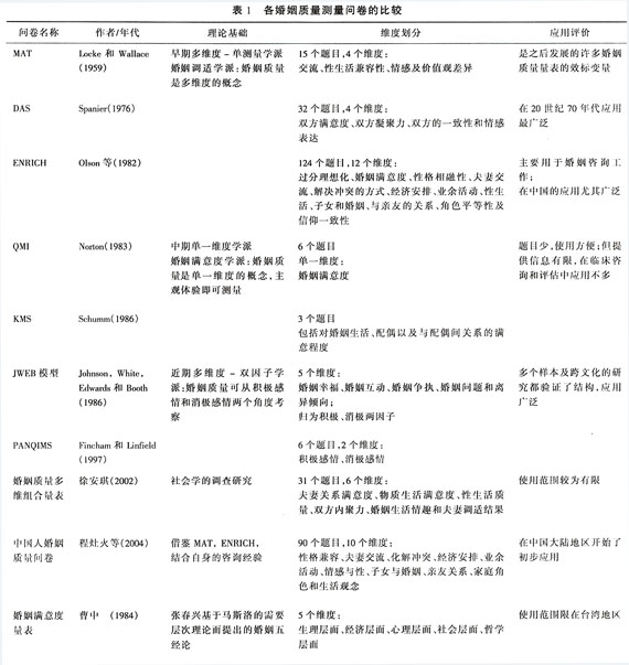 婚姻质量的内涵及测量方法