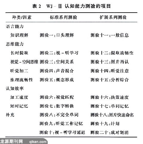 2 伍德科克-江森第三版测验(Woodcock-Johnson-Third Edition,以下简称WJ-Ⅲ智力测验)