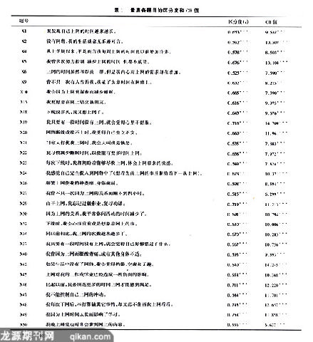 考虑到本研究量表中的题目11,14和25均为网络使用者对网络速度的要求,并不能作为判断网络使用是否达到成瘾的标准,故剔除。至此,网瘾量表共保留30道题目,分别是题目1,2,4,5,6,9,10,15,18,19,20,21,22,23,24,26,27,29,30,32,34,37,40,42,45,46,47,48,49,50。