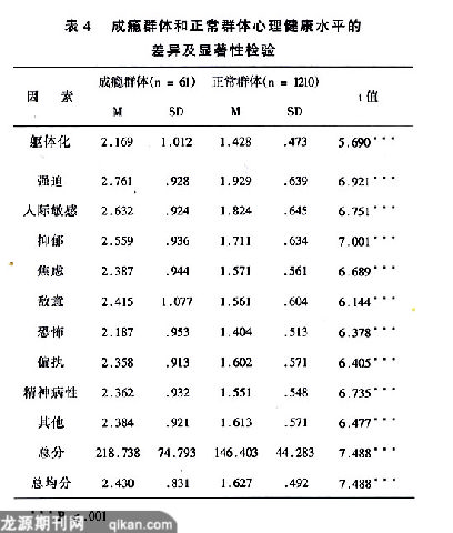 4.1 大学生成瘾群体和正常群体心理健康水平的差异比较