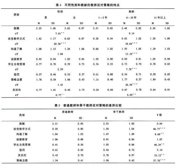 小学教师解决学生课堂问题行为的策略特点