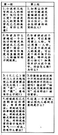 请看讲授《孔乙己》这篇文章的两组问题的比较: