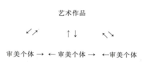 不可否认,文艺接受的群体交流活动首先是以个体性审美方式为基础和前提的,没有个体性接受,当然也就没有群体性接受和交流。但文艺的群体性交流活动和效应又与个体性文艺接受有着明显区别,个体文艺接受活动所进行的是审美个体与审美对象二者之间交流。这种交流所表现的仅仅是审美个体与审美对象之间的关系,如下所示: