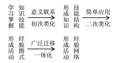 这里的结构有二层含义:其一是指将知识技能进行有意义联系的重新组织(结构化);其二是指重新组织的结果(结构体系)。即在概括化系统化水平层次上组织头脑中的知识、技能形成认知结构和技能的产生式系统,并在运用中将二者有机整合为知识技能结构。无论是“结构”本身还是“结构化”的方法,都是个体类化了的经验。知识技能结构便于新知识的固着和理解,也便于知识技能的高效率应用。所以对化学科学活动有较高水平的调节控制作用。
