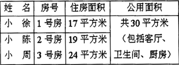 每月租金540元,他们三人该如何分摊房租?写出你认为最合理的设计方案。