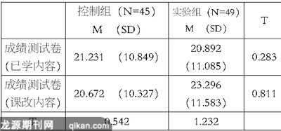 (2)研究对象:重庆某中学高中二年级的两个教学班。随机选定一个班为实验组(49人),按照先行组织者教学策略施教;另一班作为控制组(45人),采用平常的教学方法施教。
