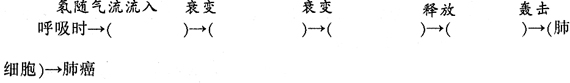 13.请根据提示将下面的氡气危害原理图补充完整。(2分)