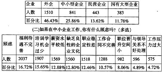 24.根据下面两表综合分析,为企业在吸引人才方面的调查写出结论。(不超过40字)(6分)
