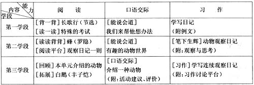 相对而言,第一、二学段注重字词,第三学段则注重句子。随着学生思维、理解能力的提高,高年级对词语色彩的理解和分辨,对关联词语的理解、选择、应用都很重视,同时还简要介绍了人物乃至景物的描写。