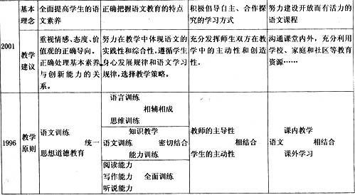 从1996年的大纲与2001年的新课标的比较中,我们可以清晰地看出对语文教学规律的认识和把握的轨迹,以及经传承和更新所达成的基本共识。
