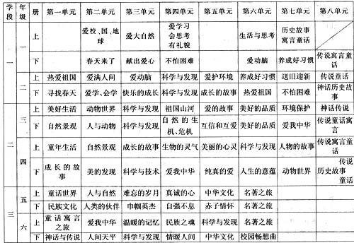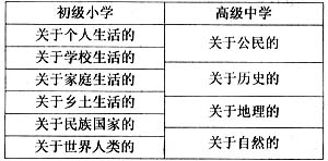 当时教科书文选的内涵,初级小学按生活领域,由个人、学校、家庭、乡土、民族国家以至于世界人类逐步扩展;高级小学则按常识分,有公民、历史、地理和自然等项。我国语文教育发展的历程虽然艰难曲折,但始终或隐或显地贯串着民族文化的传承和革新。于是必须研究小学阶段语文教育中不可或缺的文化内涵,探讨民族文化和多元文化的关系,并遵照学生的身心发展规律和语文学习规律,作出合理的安排。