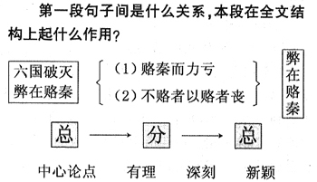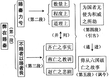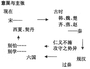 由现在(契丹、西夏侵宋,宋求和)—战国时(秦侵韩、魏、楚、齐、燕、赵六国)—贾谊《过秦论》“仁义不施而攻守之势异也”,借这种形式来提出“为国者无使为积威之所劫”的主张。
