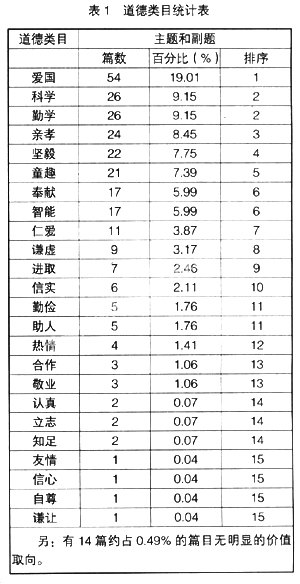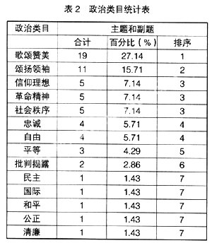 据统计,苏教版小语教材中的道德类目、政治类目结果如下(见表1与表2)。