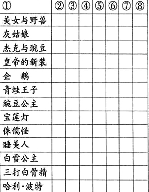 (说明:如果该童话包含这个主题就打“√”如果没有就打“×”)