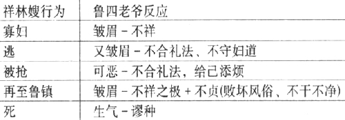 师:很好,已经开始关注人本身了。请进一步分析考察卫老婆子为代表的其他人。着重分析他们对祥林嫂二次婚姻的看法。