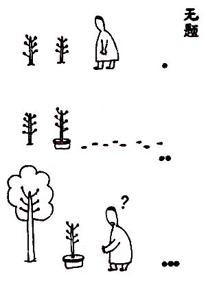 【思路点拨】画中人希望小树早日成材的愿望是好的,但不以植树之道植树,盲目搬用养花的成法,结果事与愿违。由此可以提炼出“不按规律行事,必将南辕北辙”“别人的经验不可照搬”等观点。如果从材料与现实联系的角度看,又可以谈“育树与育人”“望子成龙者戒”等等。
