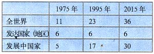 1995年全世界拥有800万以上人口的大城市数量,由1975年的11个发展到23个,其中增加的12个全都来自发展中国家。预计到2015年,__________________。由此可见,发展中国家在世界城市化进程中____________________________。