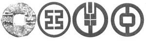 10.下面四幅图中,图1为“秦半两钱”,其结构特点是外圆内方,取天圆地方之意。图2为中国工商银行的徽标,图3为中国农业银行的徽标,图4为中国银行的徽标。请说说这三个银行的徽标在构图上有何异同之处。