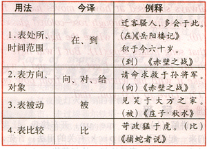 若文言虚词出现在陌生的句子中,也可迅速回忆该词的所有用法及例句,快速对应,准确找出它的用法,就以上面第⑺⑻句为例。我们马上从记忆中调出有关“于”的用法。见下表: