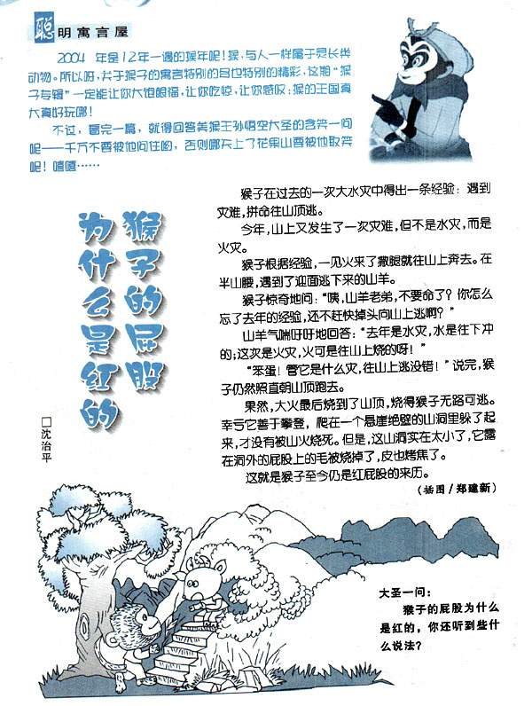 2004年是12年一遇的猴年呢!猴,与人一样属于灵长类动物。所以呀,关于猴子的寓言特别的多也特别的精彩,这期“猴子专辑”一定能让你大饱眼福,让你吃惊,让你感叹:猴的王国真大真好玩哪!