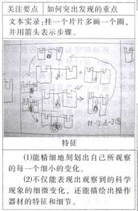 (3)引导观察:把兴趣引导到对科学现象的关注上。幼儿能以漫画的形式表现,说明他们具有一定的绘画表现能力,这时可引导其对重点的内容作细致的观察。