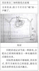 (2)加以赞赏:与幼儿交流,让他明确地感受到老师的赞赏,并告知,他个人的兴趣等一会儿可以传递给所有的同伴。