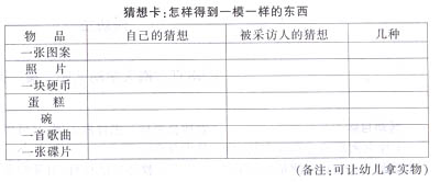 猜想卡若干,录像《生活中的复制》,联系好要采访的人,请家长与幼儿一起收集有关复制的资料。