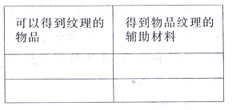 2.请幼儿讨论:什么样的东西可以印下纹理?怎样可以印下纹理?(幼儿分组操作:木板、玻璃、地毯等材料,找找哪些物品可印下纹理。)