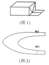 (2)在剪好外形的纸帽(图2,缺口处交叉则成太阳帽)上绘出各种图案,装饰遮阳帽。