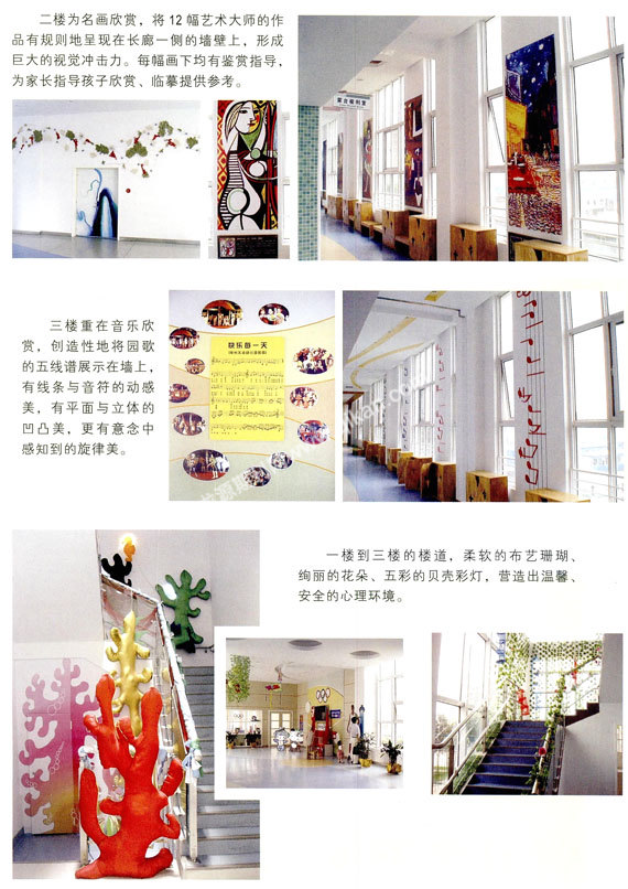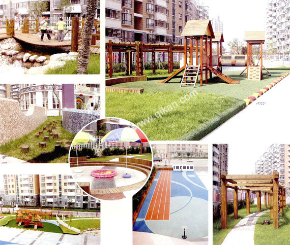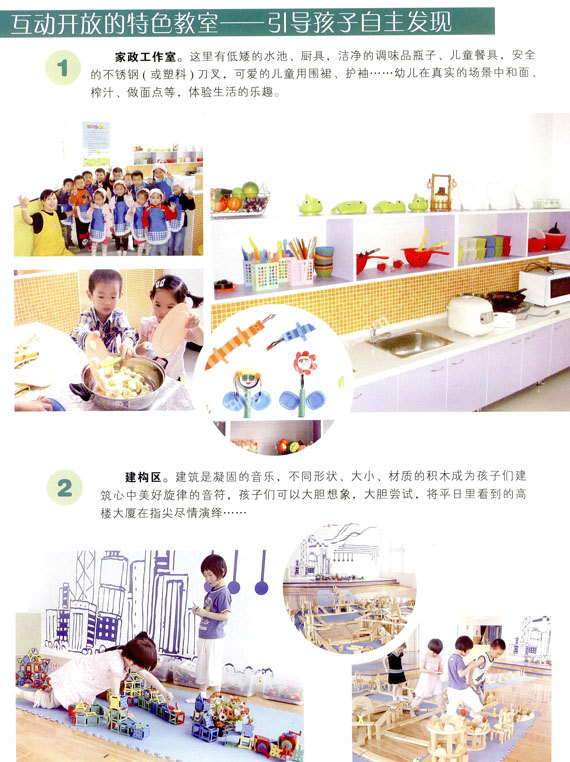 除了必备的硬质、软质活动场地外,我园户外游戏场地均采用绿色的草坪和原木玩具,营造绿色、环保的游戏空间。此外,音乐演出活动广场,多材质铺装的探索小径、梅花桩、小山坡、铁索桥、喷泉、彩色迷宫墙等“景点”在游戏区错落分布,达到美观性和趣味性的完美统一,孩子们可以在优美自然的环境中自由探索。