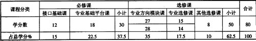 2.基础强化 “接口基础课”的设置既保证了学生的基础知识比较扎实,课程学习又有一定的弹性,体现了人才培养的基本规格和全面发展的共性要求;同时,对原来一些学分较少、学习要求不高的基础课程进行强化,方便学生对后续课程的学习;以“模块”、“课程群”形式对选修课程加以优化组合,规定学生在其中选择一定学分的课程学习,既保持选修课的可选择性,又避免以往学生盲目任选造成的知识结构的无序,使学生知识结构整体功能得到发挥。
